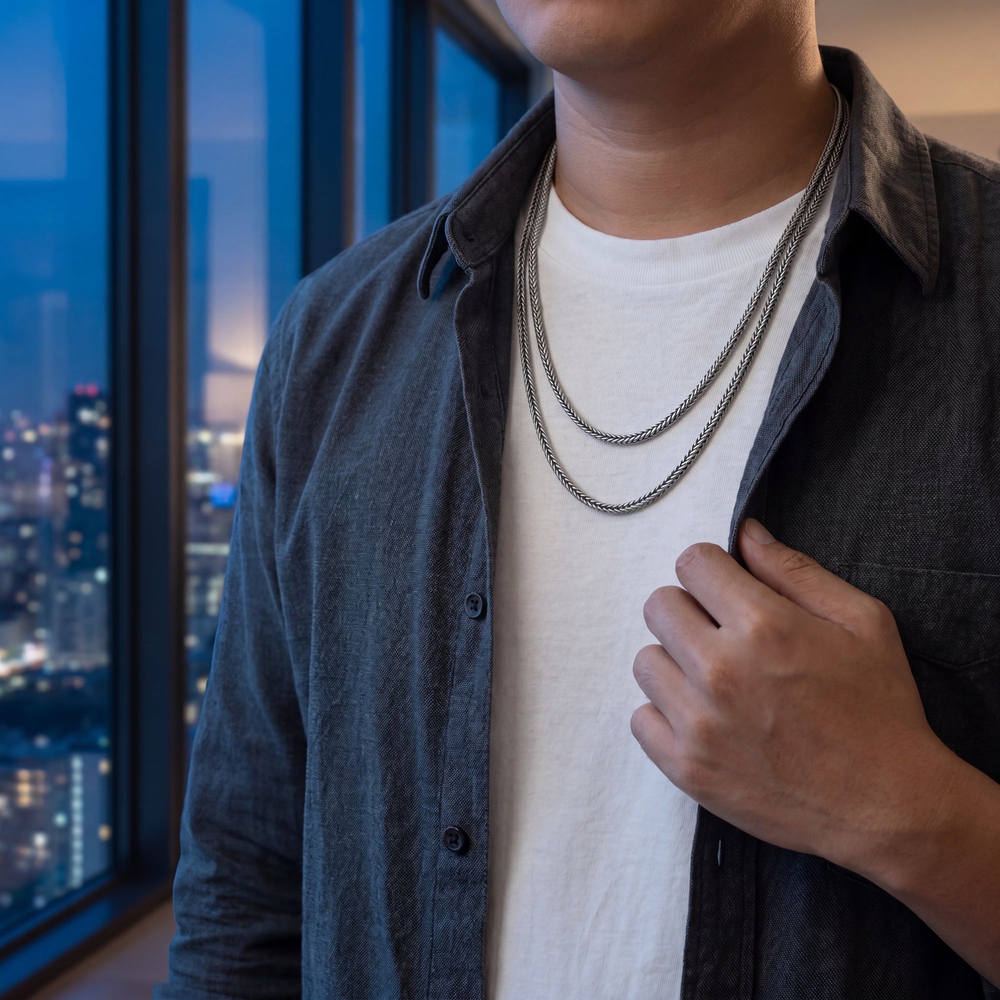 Sleek Italian 925 silver chain, crafted for everyday wear and suited for both men and women.